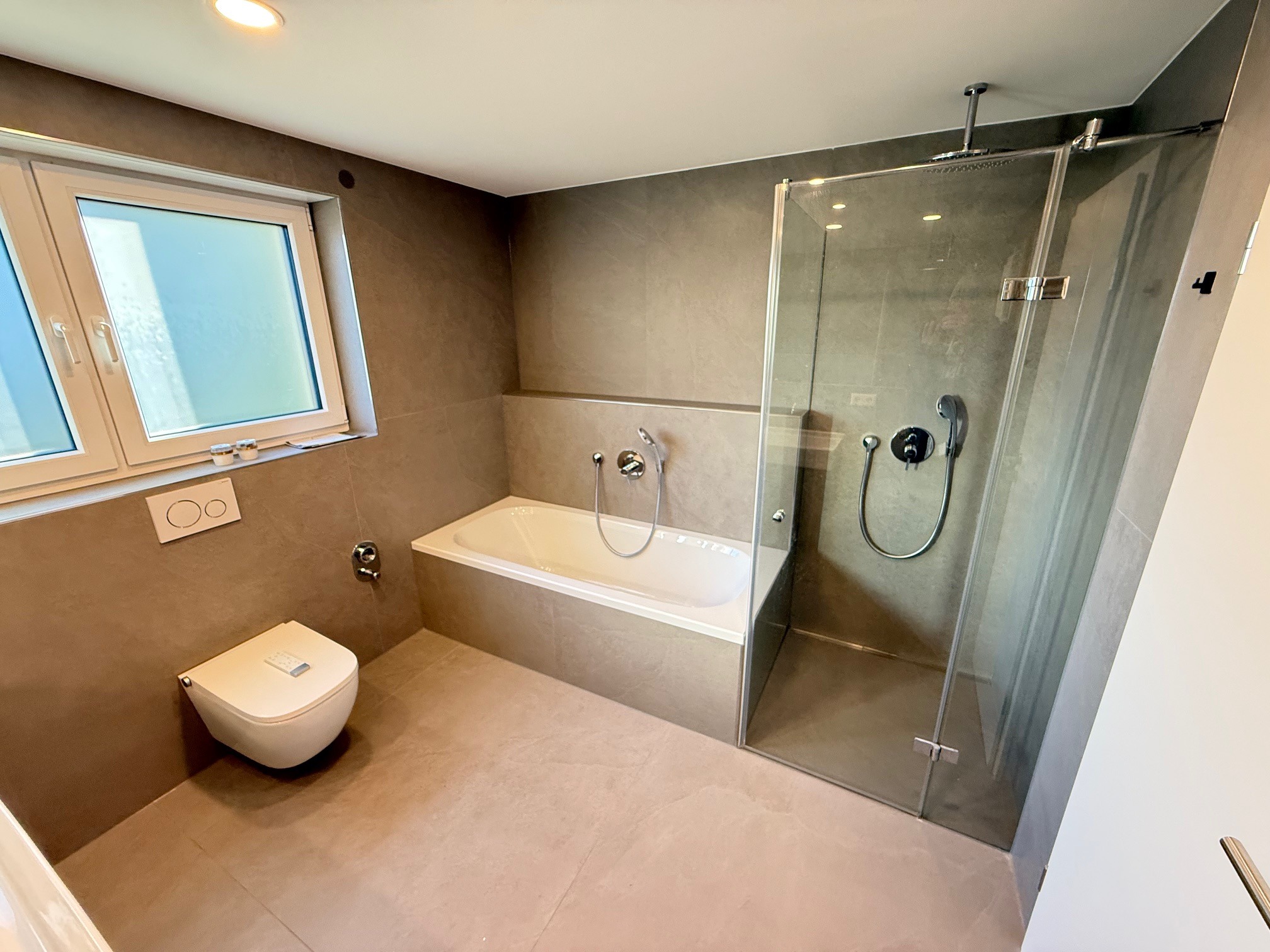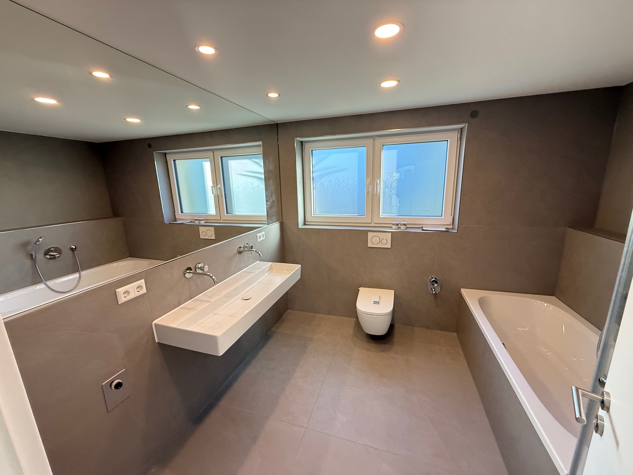 – Modernes Luxusbad mit Badewanne, sep. Duschbereich und speziellem Hygiene-WC